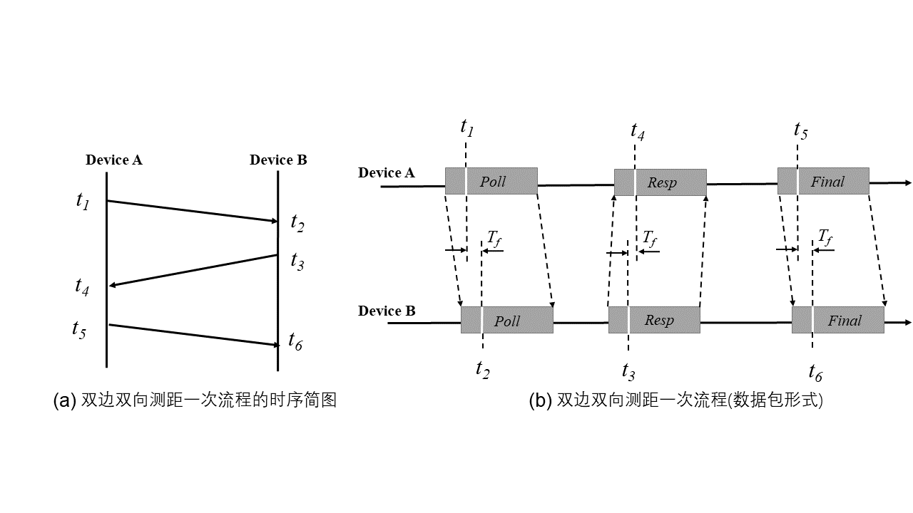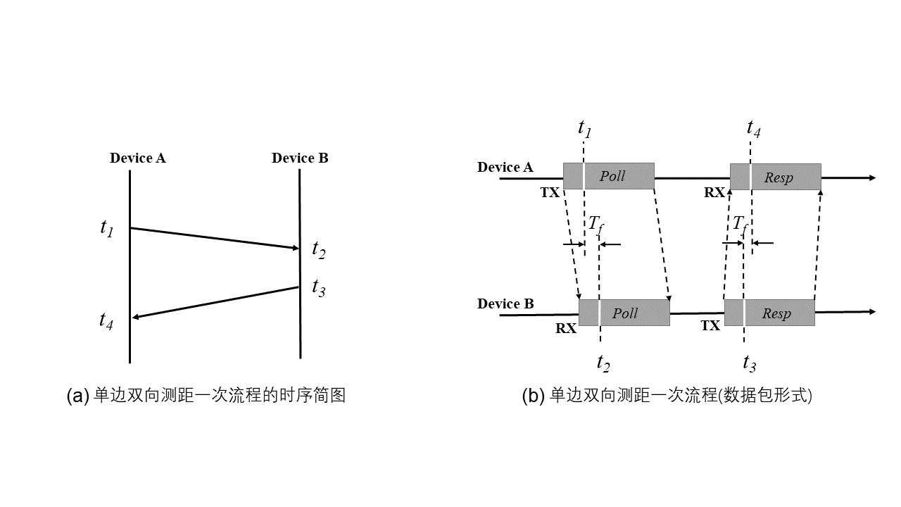 In essence, the two devices achieve implicit synchronization through data exchange. However, due to unpredictable software/hardware scheduling delays and other factors, the receiver cannot precisely control the waiting time to exactly \(\Delta t\), leading to inaccurate timing and thus significant ranging errors.