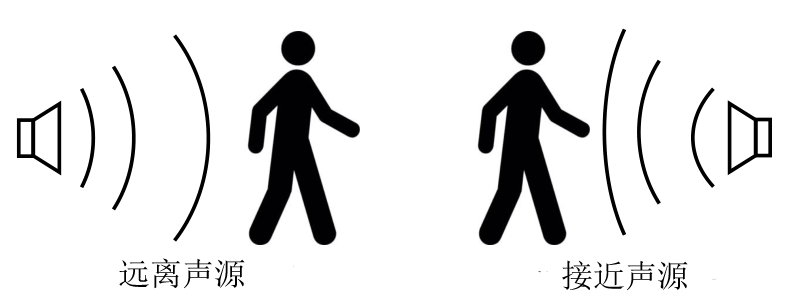where \(f_0\) denotes the source-emitted frequency, \(c\) denotes the speed of sound, \(v\) denotes the receiver’s speed—positive when moving toward the source and negative when moving away.