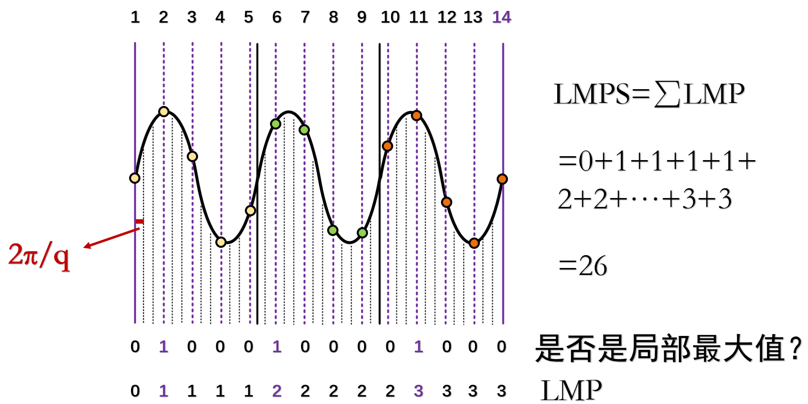 As shown, within a time window, \(p = 3\), \(q = 13\). The LMP values of the sampled points are illustrated, and the LMPS of the signal is 26.