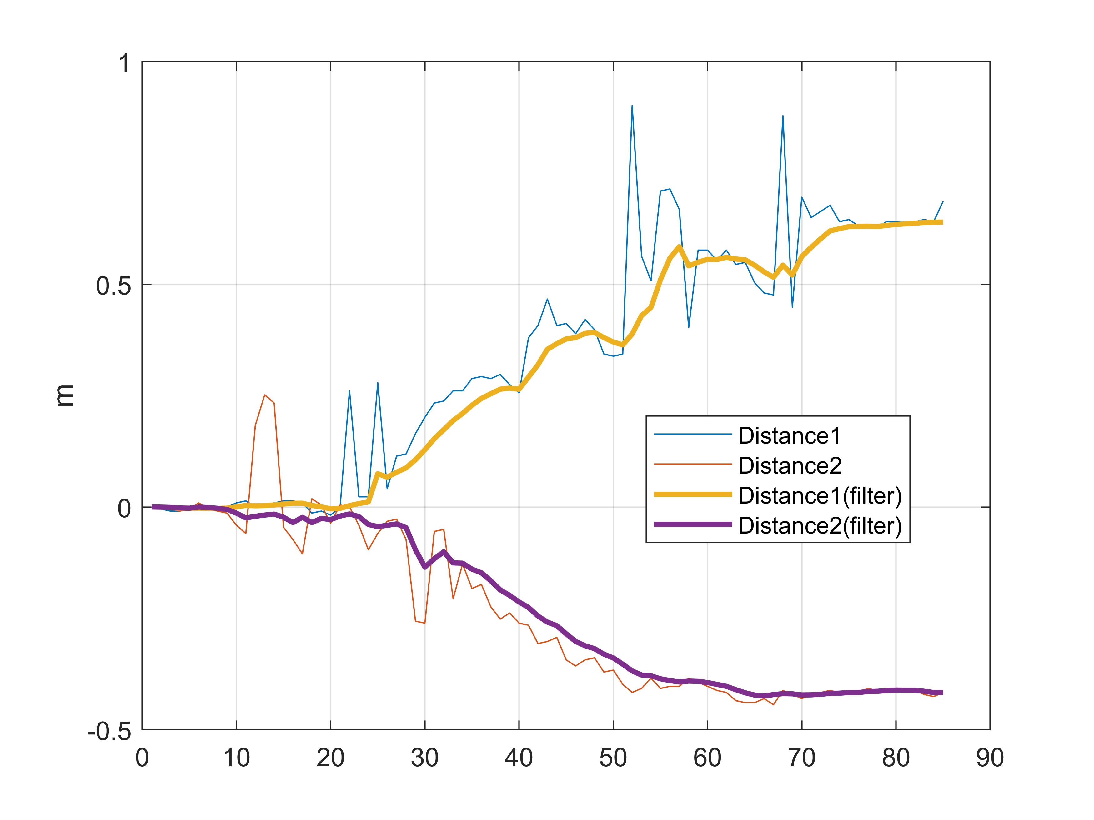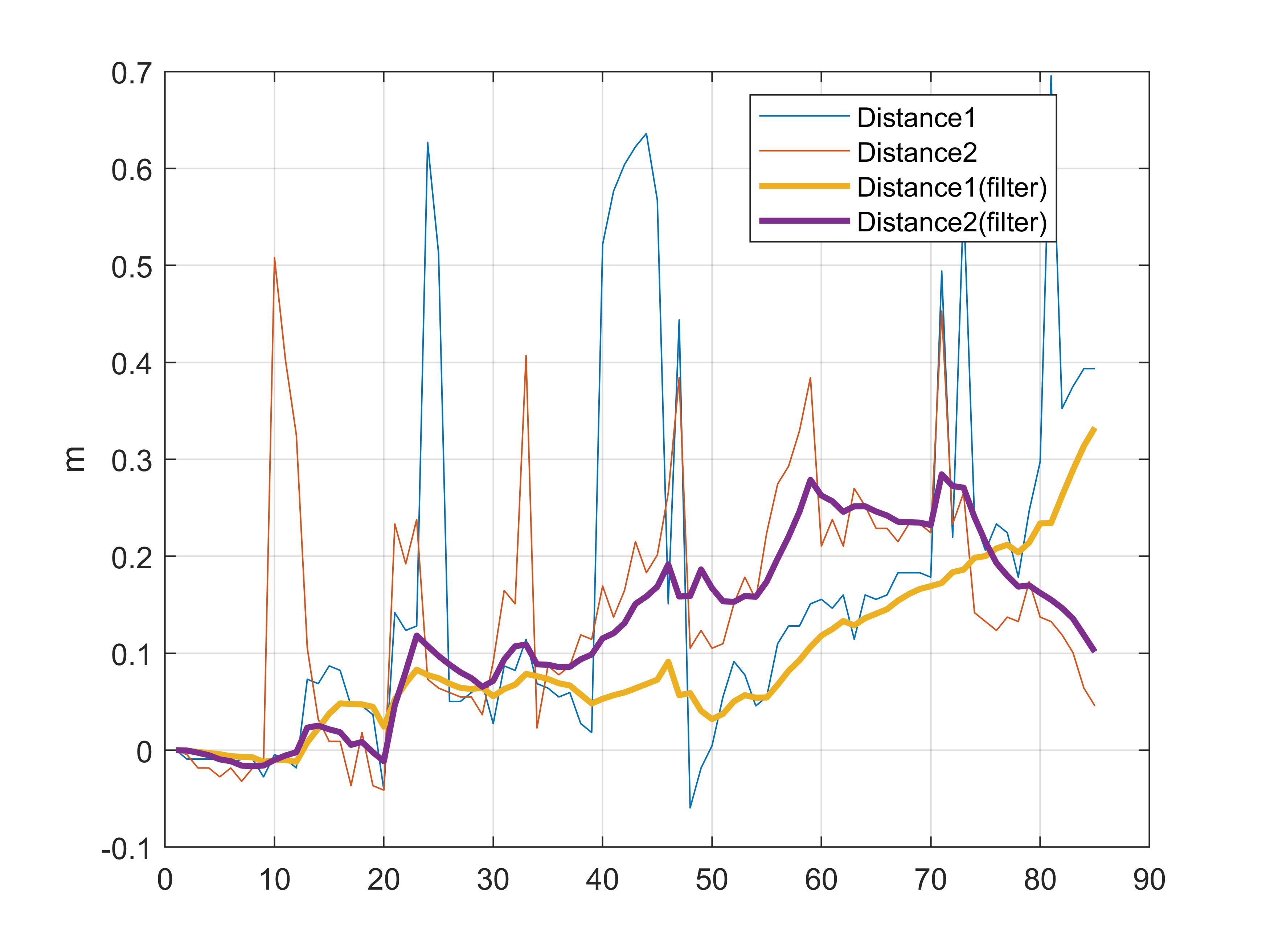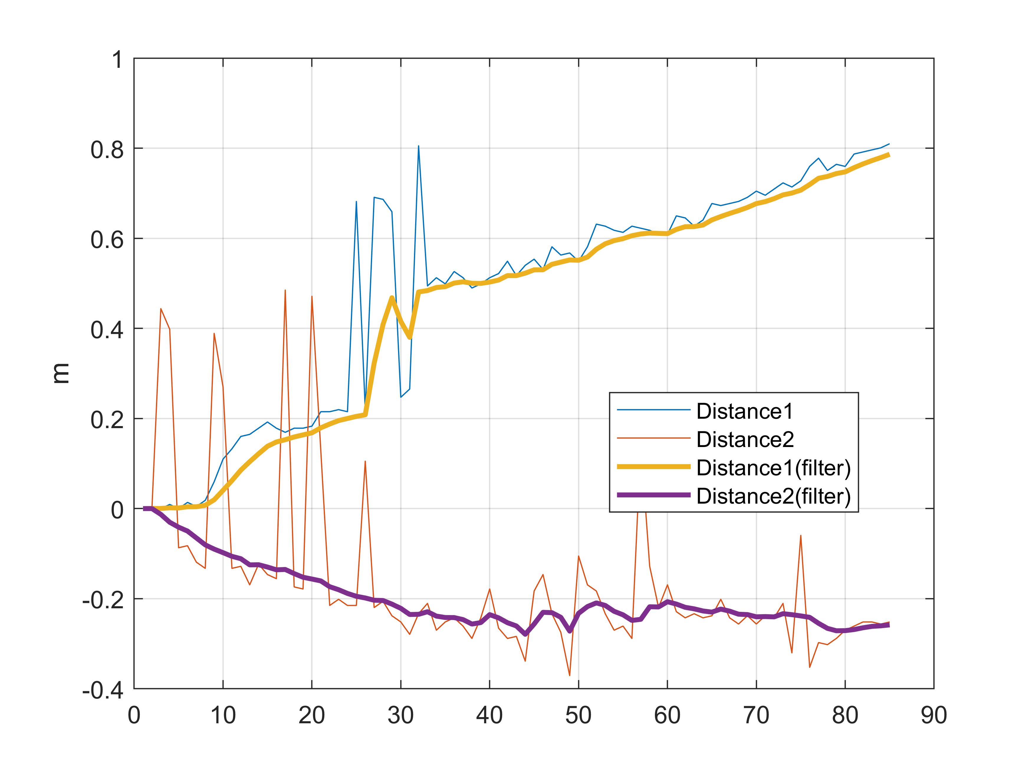 legend('Distance1', 'Distance2','Distance1(filter)', 'Distance2(filter)' )