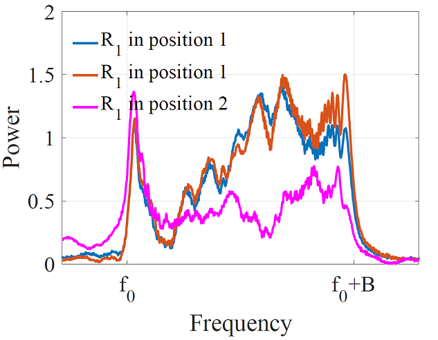 Additionally, we examined how frequency selectivity changes when the device position changes (i.e., when the multipath environment alters). We compare Device 1’s recording at Position 2 (purple line) with its two recordings at Position 1 (blue and red lines). The results show a substantial shift in frequency selectivity when the device is moved. This indicates that a device will no longer pass authentication based on prior frequency characteristics once relocated. This property enhances security by requiring re-authentication before each new session, effectively mitigating man-in-the-middle attacks.