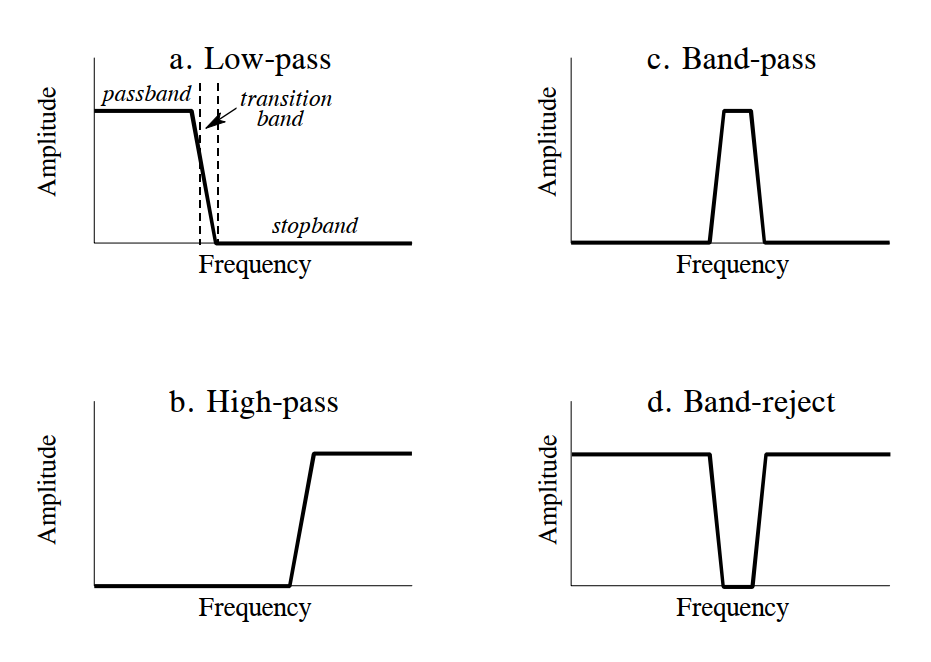 The frequency-domain magnitude characteristics of these four filter types are: