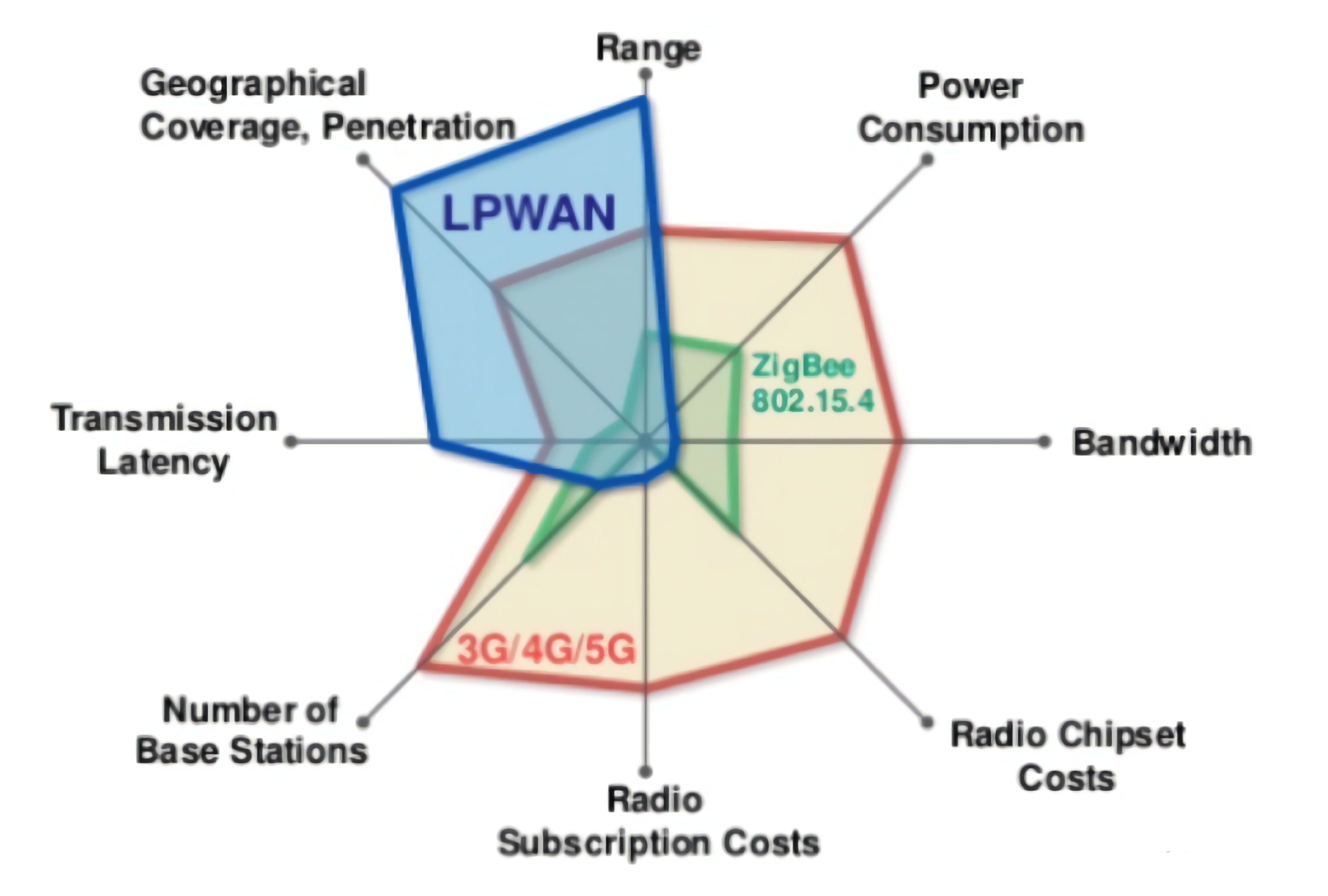 To address the shortcomings of the above technologies in concrete IoT deployments, Low-Power Wide-Area Networks (LPWAN) have evolved as a connectivity solution optimized for large-scale IoT applications. LPWAN combines the low-power advantage of short-range wireless networks with the extensive coverage of cellular networks—offering broad geographical reach and minimal energy consumption.