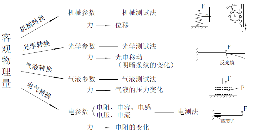 传感器的本质是感受被测量的信息,并将感受到的信息,按一定规律变换成为电信号或其他所需形式的信息输出,以满足信息的传输、处理、存储、显示、记录和控制等要求。以力的测量为例,物体受到的力即为一种典型的客观物理量,它无法被直接观测或记录。因此,需要通过转换技术,变换为可被测量和记录的值。