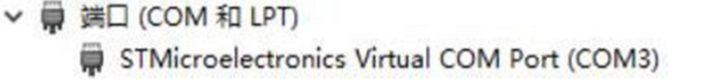 安装完成后,将UWB节点与电脑连接,查看 我的电脑->属性->设备管理器,在“端口(COM和LPT)一栏,可以看到COMx(x为数字),说明ST虚拟串口驱动安装完毕,我们可以开始UWB节点程序的烧录了。如下示意