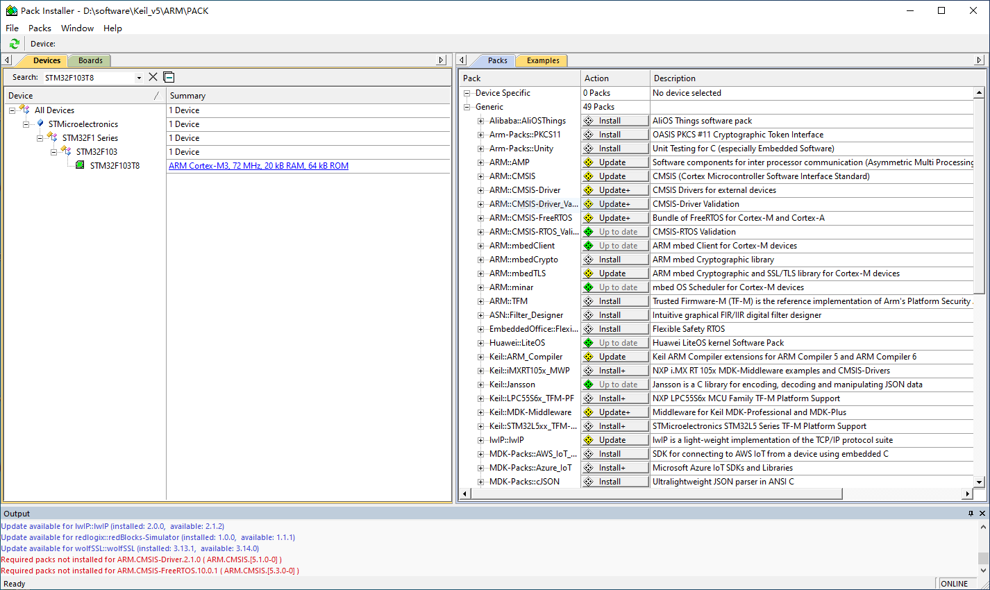 通常情况下,等待加载结束之后,找到自己板子对应的硬件包,比如"STM32F0xxxx",点击下载即可。
