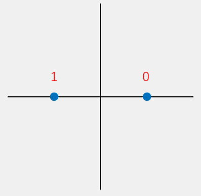 从I/Q调制的角度去理解,此时“0”对应的信号为1*sin(2\pi ft)+0*cos(2\pi ft),"1"对应的信号为-1*sin(2\pi ft)+0*cos(2\pi ft),其星座映射图为: