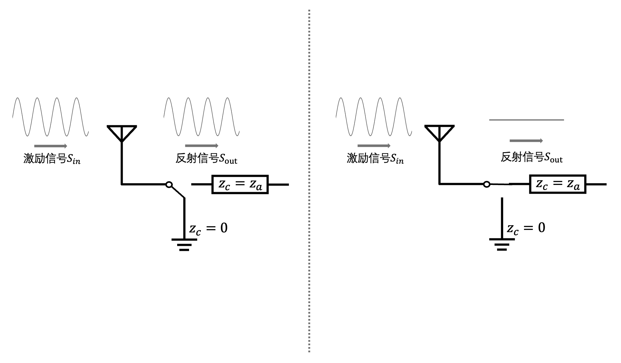 其中,Z_{a}和Z_{c}和分别表示天线的阻抗(一般为50\Omega)以及连接到天线的电路对应的阻抗。